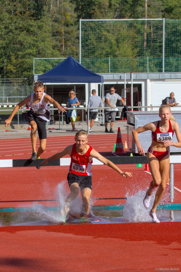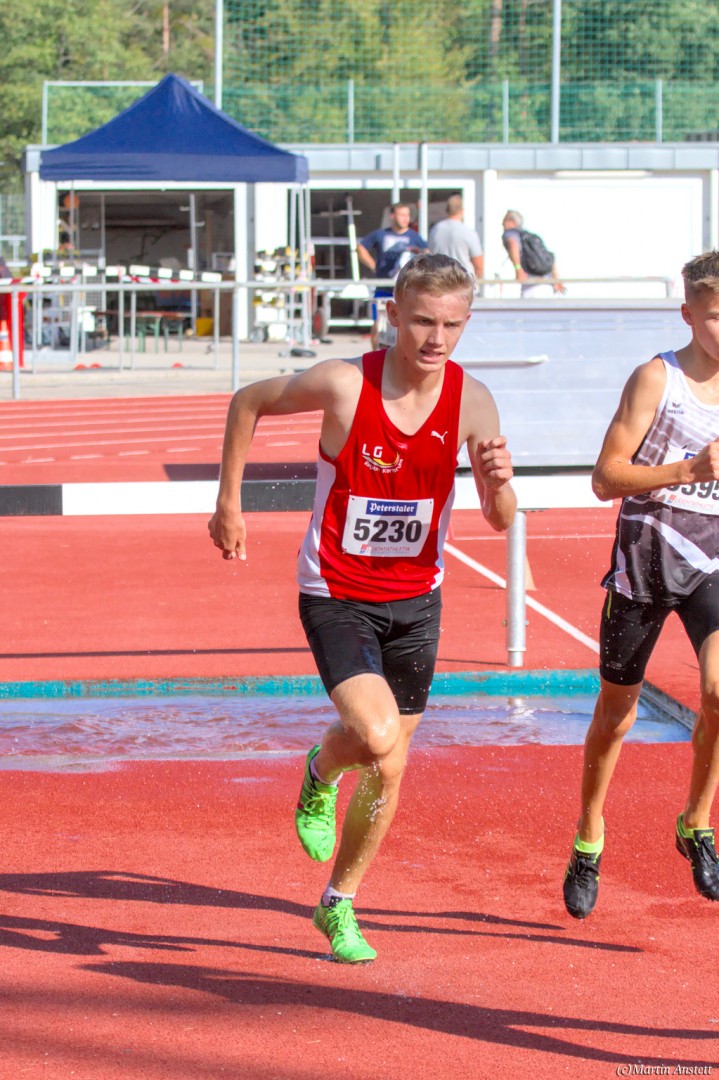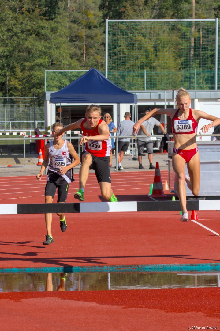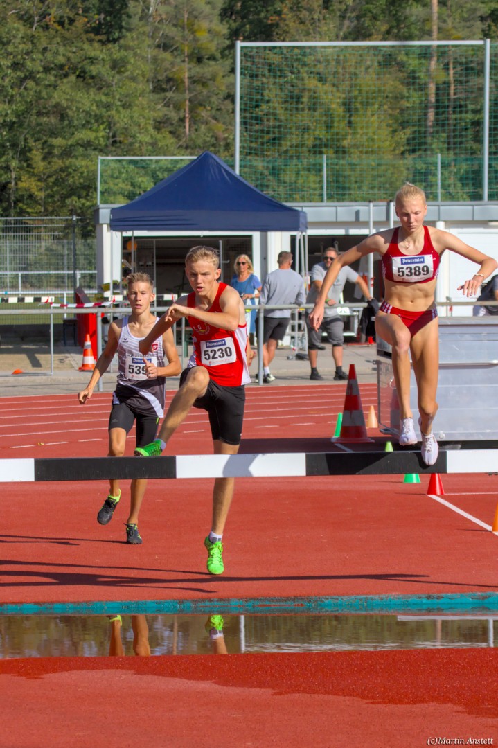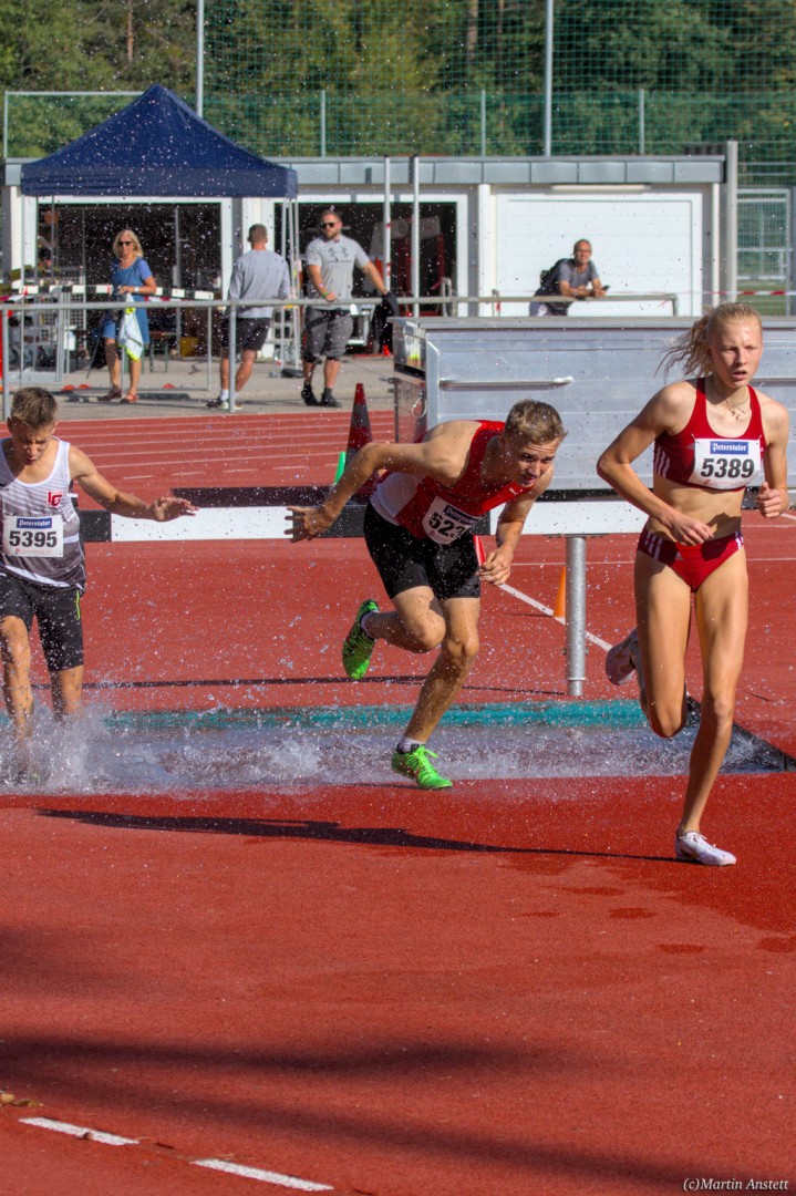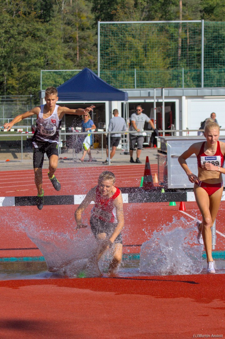 Im Rahmen der Baden-Württembergischen Meisterschaften am 19.09.2020 wurden in Walldorf auch die Meister im Hindernislauf der Schüler/innen U16 ermittelt. Tim Anstett (TuS Neureut) gab dabei ein sehr erfolgreiches Debut über die Hindernisse. In einem gemischten Lauf lieferte er sich ein spannendes Rennen mit der überragenden deutschen Läuferin des Jahrganges 2005, Jolanda Kallabis (TG Stockach), in dem sich beide zu tollen Endzeiten trieben. Jolanda verbesserte in sehr starken 4:48,08min ihre eigene deutsche U16-Bestleistung um über eine Sekunde. Tim, der lange zusammen mit ihr lief, setzte sich letzlich auf den letzten 100m im Sprint ab und sicherte sich den BW-Meistertitel der MU16 in schnellen 4:47,37min. Nach nur einer Trainingseinheit am Wassergraben vor diesem Debut über die Hindernisstrecke eine starke Leistung, die ihn auf Anhieb unter die Top 3 der aktuellen deutschen Bestenliste katapultierte. Ein Rennen, das Tim viel Spass gemacht und sicherlich auch Appetit nach mehr geweckt hat.
