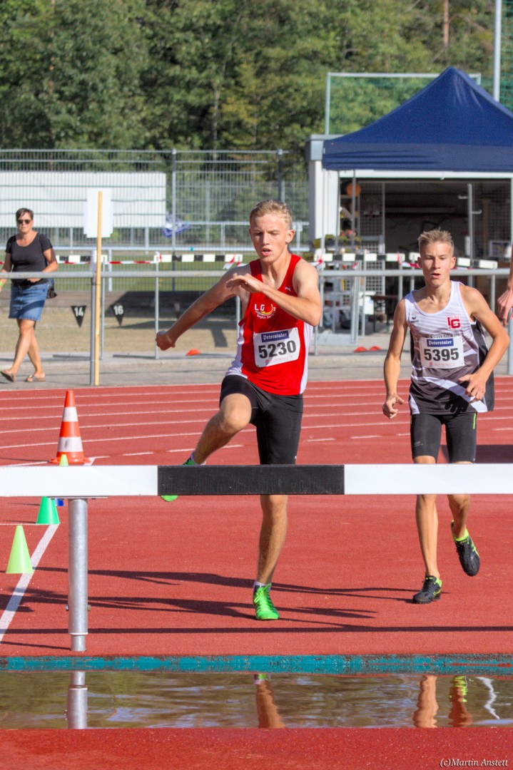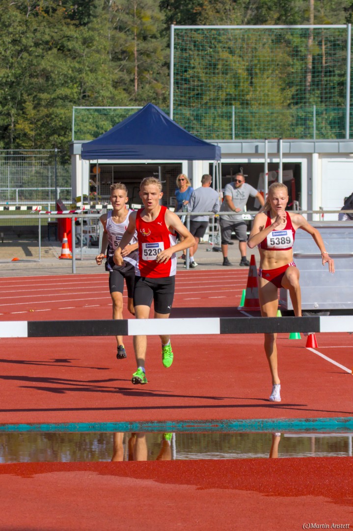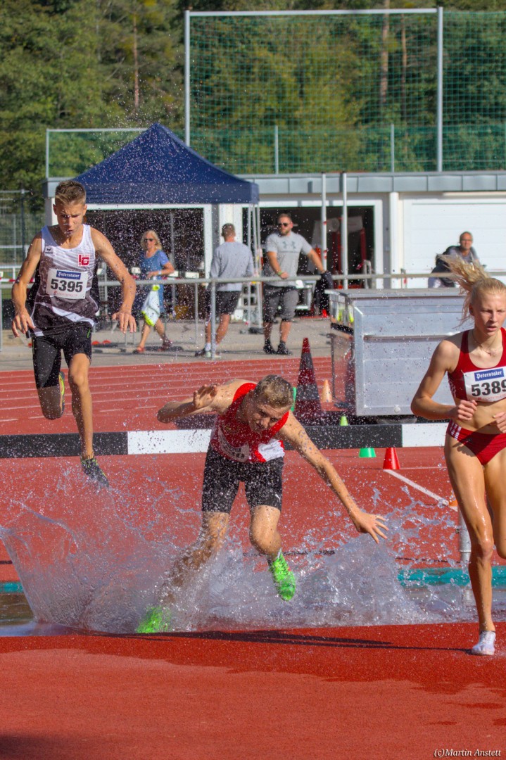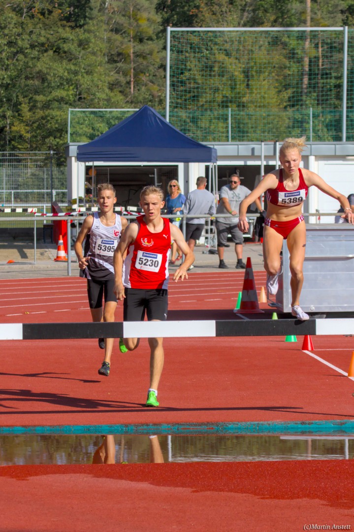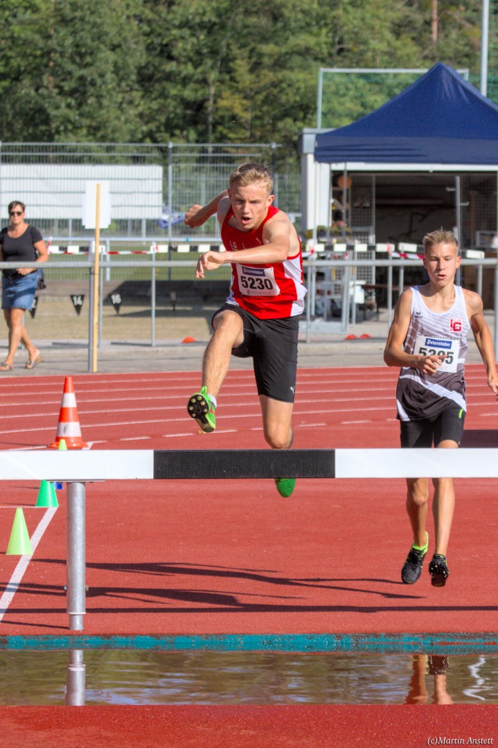 Im Rahmen der Baden-Württembergischen Meisterschaften am 19.09.2020 wurden in Walldorf auch die Meister im Hindernislauf der Schüler/innen U16 ermittelt. Tim Anstett (TuS Neureut) gab dabei ein sehr erfolgreiches Debut über die Hindernisse. In einem gemischten Lauf lieferte er sich ein spannendes Rennen mit der überragenden deutschen Läuferin des Jahrganges 2005, Jolanda Kallabis (TG Stockach), in dem sich beide zu tollen Endzeiten trieben. Jolanda verbesserte in sehr starken 4:48,08min ihre eigene deutsche U16-Bestleistung um über eine Sekunde. Tim, der lange zusammen mit ihr lief, setzte sich letzlich auf den letzten 100m im Sprint ab und sicherte sich den BW-Meistertitel der MU16 in schnellen 4:47,37min. Nach nur einer Trainingseinheit am Wassergraben vor diesem Debut über die Hindernisstrecke eine starke Leistung, die ihn auf Anhieb unter die Top 3 der aktuellen deutschen Bestenliste katapultierte. Ein Rennen, das Tim viel Spass gemacht und sicherlich auch Appetit nach mehr geweckt hat.