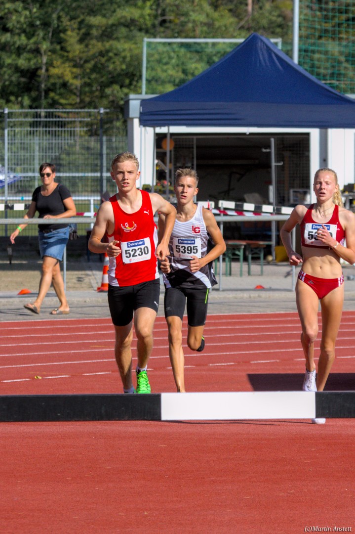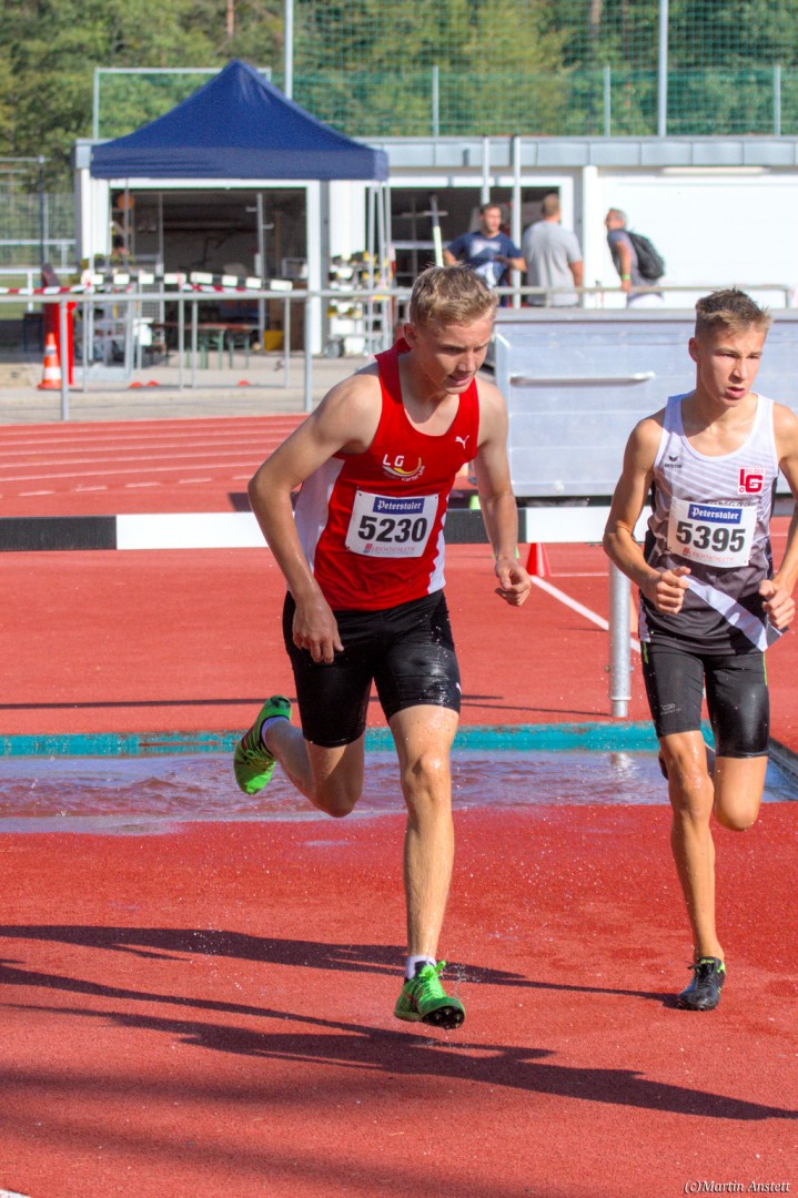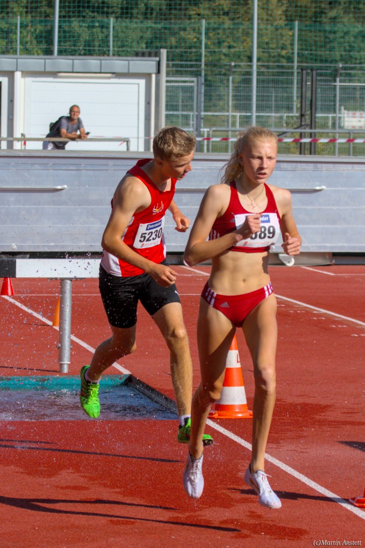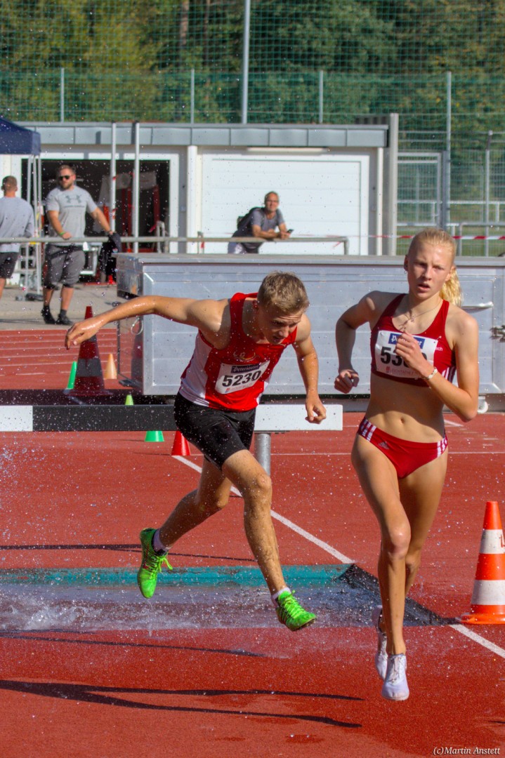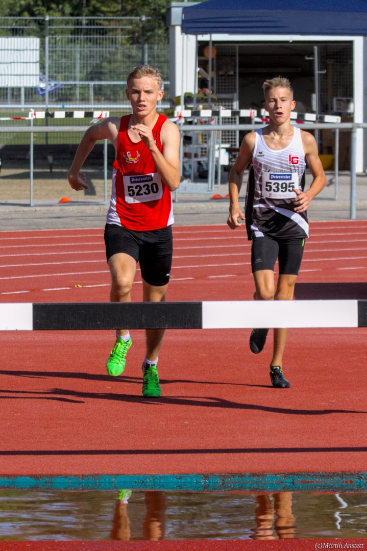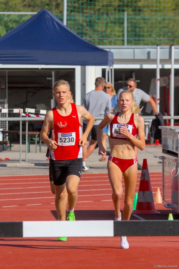 Im Rahmen der Baden-Württembergischen Meisterschaften am 19.09.2020 wurden in Walldorf auch die Meister im Hindernislauf der Schüler/innen U16 ermittelt. Tim Anstett (TuS Neureut) gab dabei ein sehr erfolgreiches Debut über die Hindernisse. In einem gemischten Lauf lieferte er sich ein spannendes Rennen mit der überragenden deutschen Läuferin des Jahrganges 2005, Jolanda Kallabis (TG Stockach), in dem sich beide zu tollen Endzeiten trieben. Jolanda verbesserte in sehr starken 4:48,08min ihre eigene deutsche U16-Bestleistung um über eine Sekunde. Tim, der lange zusammen mit ihr lief, setzte sich letzlich auf den letzten 100m im Sprint ab und sicherte sich den BW-Meistertitel der MU16 in schnellen 4:47,37min. Nach nur einer Trainingseinheit am Wassergraben vor diesem Debut über die Hindernisstrecke eine starke Leistung, die ihn auf Anhieb unter die Top 3 der aktuellen deutschen Bestenliste katapultierte. Ein Rennen, das Tim viel Spass gemacht und sicherlich auch Appetit nach mehr geweckt hat.
