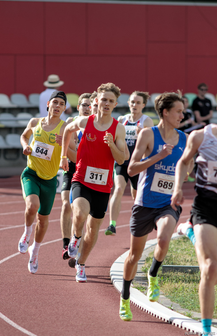 Bei optimalen Bedingen in Karlsruhe nutzte Tim Anstett die tolle Atmosphäre der Langen Laufnacht zu einem sehr starken Saisoneinstand über die 800m. Mit einem couragierten Rennen konnte er dabei seine persönliche Bestleistung um über zwei Sekunden auf sehr schnelle 1:53,38min steigern. Mit dieser Zeit hat er nun deutlich Platz 1 der Deutschen Bestenliste seiner Altersklasse übernommen und auch die Qualifikationsnorm von 1:52,00 für die U18-Europameisterschaften 2022 in Jerusalem könnte bei einem der nächsten Rennen durchaus in Reichweite sein!