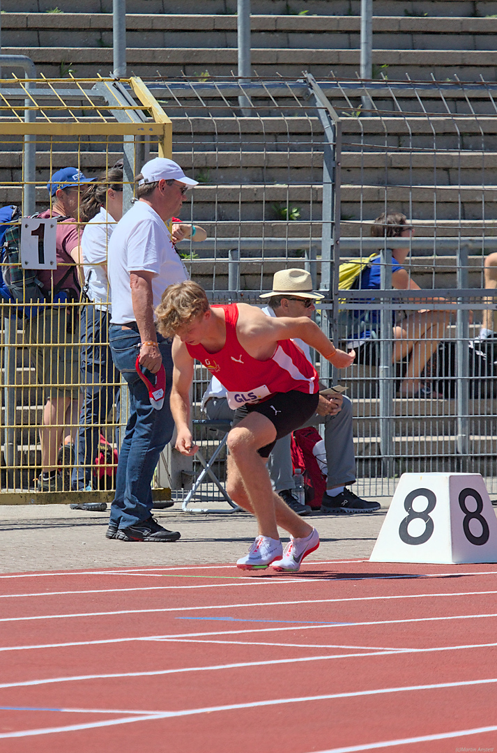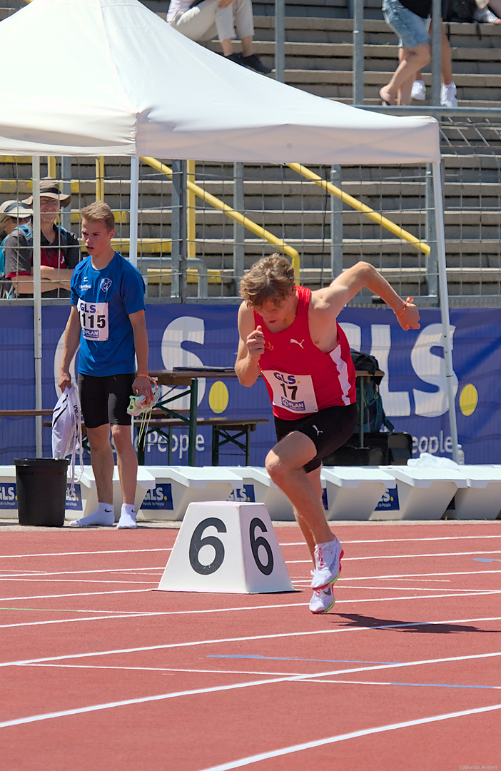Mit einem mutig vorgetragenen langen Spurt gelang es ihm als Erster auf die Zielgerade einzubiegen. Hier hatte dann aber der schon im Vorlauf sehr starke Tom Stöber (TV Wetzlar) die größten Reserven und stürmte in 1:57,10 Minuten noch an Tim vorbei zum Sieg. Tim konnte in 1:57,80 Minuten dann den Silberrang vor Simon Arnold vom LAC Freiburg (1:57,84 Minuten) verteidigen.