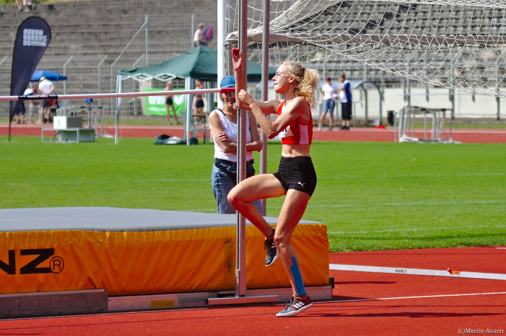 Das starke Abschneiden der Schützlinge von Sina Spancken wurde noch dazu durch den sechsten Platz von Stabhochspringer Aaron Gissel im Blockwettkampf Sprint/Sprung M15 abgerundet. In einem ausgeglichenen Mehrkampf erreichte Aaron dabei 2344 Punkte.